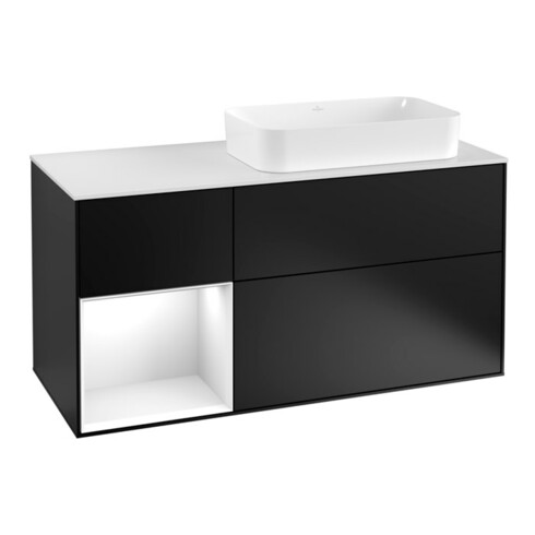 TTCV&B Finion Meuble sous lavabo 120 cm, éclairage mural, blanc laqué, bleu mat laqué