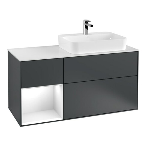TTCV&B Finion Meuble sous lavabo 120 cm, éclairage mural, blanc mat, laqué, bleu moyen