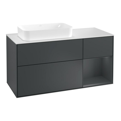 TTCV&B Finion Meuble sous lavabo 120 cm, éclairage mural, blanc mat, poignée rouge mat laquée