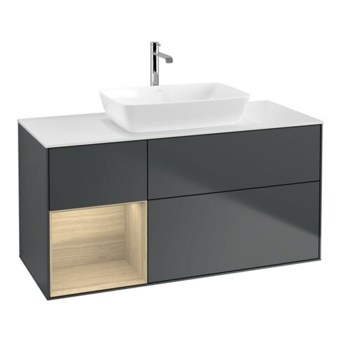 - Avec élément d'étagère éclairé et perçage pour robinet