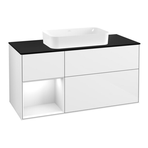 TTCV&B Finion Meuble sous lavabo 120 cm, éclairage mural, laqué blanc brillant