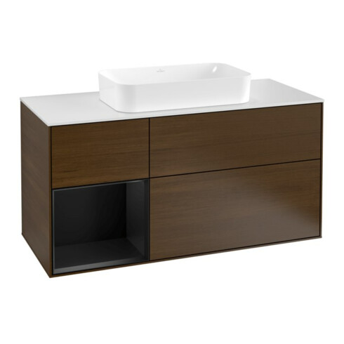 TTCV&B Finion Meuble sous lavabo 120 cm, éclairage mural, réglette gauche bleu mat, laque, noyer veneer