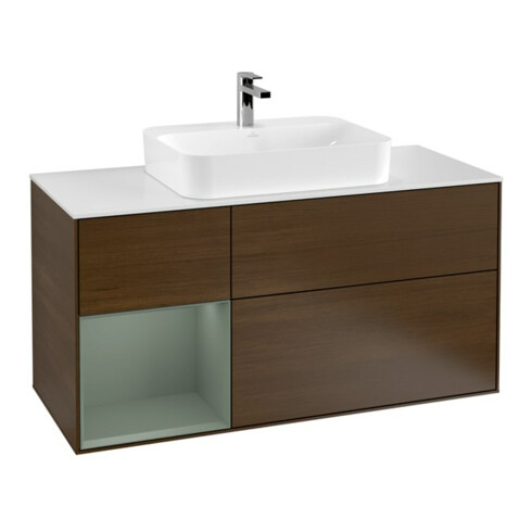 TTCV&B Finion Meuble sous lavabo 120 cm, Pl w m, Éclairage mural, Rg g, Oli. m Lac, noyer vein.