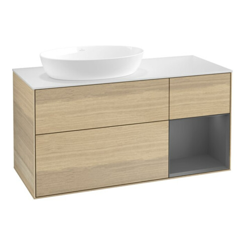 TTCV&B Finion Meuble sous lavabo 120 cm, placage bois, anthracite mat, laqué, ouverture à poignée