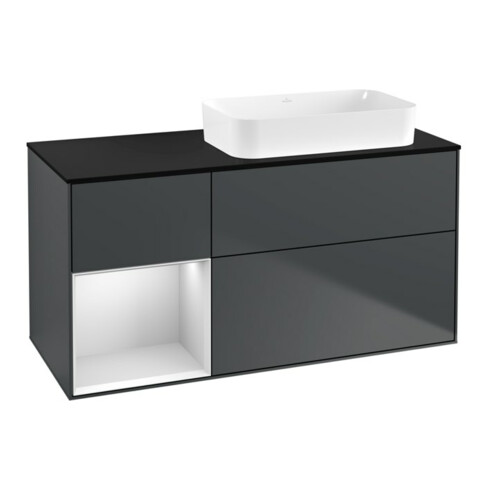 TTCV&B Finion Meuble sous lavabo 120x60 cm, Éclairage mural, gauche, blanc mat laqué, bleu mat laqué