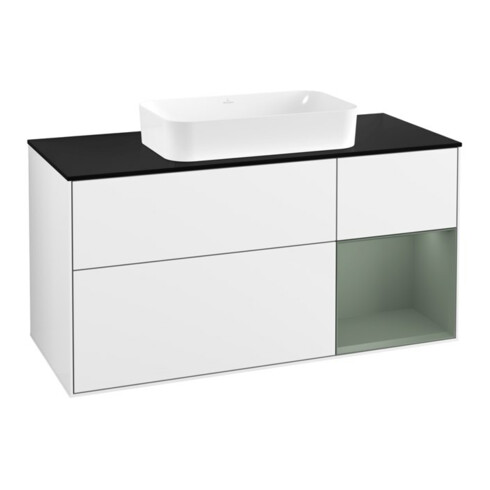 TTCV&B Finion Meuble sous lavabo 120x60 cm, éclairage mural, laqué blanc brillant
