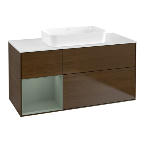 V&B Finion Meuble sous lavabo 120x60 cm, éclairage mural, placage noyer, laqué reg re oli.