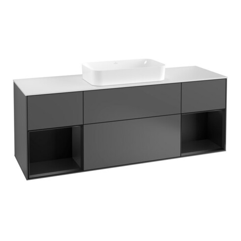 TTCV&B Finion Meuble sous lavabo 160 cm, éclairage mural, blanc mat, réglette bleue mate, anthracite mat