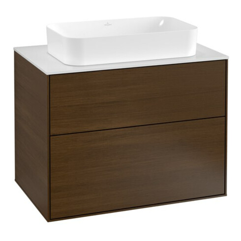 TTCV&B Finion Meuble sous lavabo 80x60,3 cm, plan de découpe blanc, placage noyer