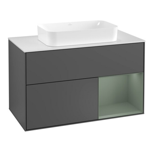 TTCV&B Meuble sous lavabo avec plan de toilette blanc Finion 100x60,3 cm, côté droit huilé avec laque, anthracite m
