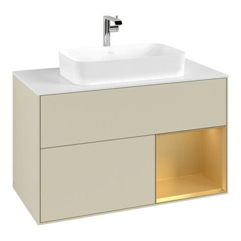 TTCV&B Meuble sous lavabo avec plan de toilette blanc Finion 100x60,3cm, tiroir droit, poignée argent, laqué mat