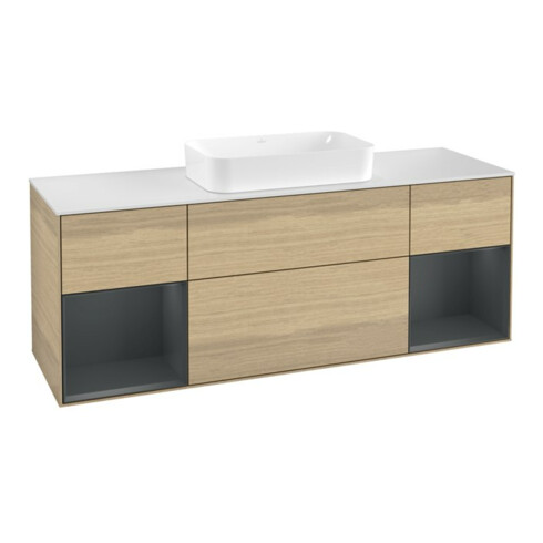 TTCV&B Meuble sous lavabo avec plan de toilette blanc Finion 160x60 cm, étagère médium laqué, placage chêne