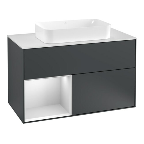 TTCV&B Meuble sous lavabo avec plan de travail blanc Finion 100x60,3 cm, face gauche blanc laqué, milieu bleu laqué