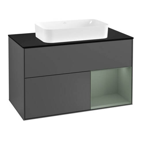 TTCV&B Meuble sous lavabo avec plan de travail bleu m Finion 100x60,3cm, Rg re Oli. m Lac, Anthrac. m