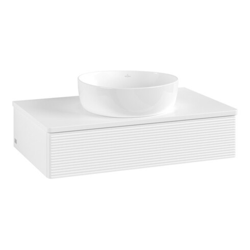 TTCV&B Meuble sous lavabo avec structure de façade - Éclairage Antao 80x19x50cm, couleur WBP Lac, blanc laqué