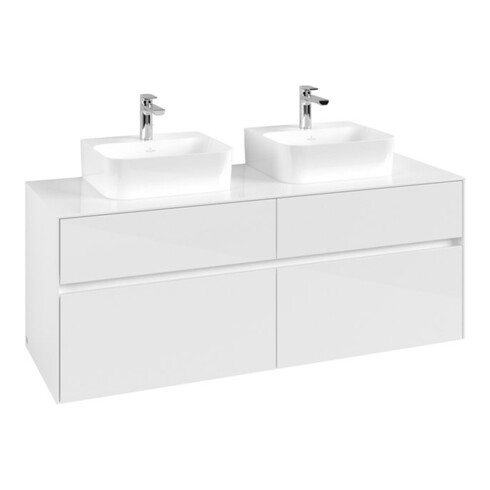 TTCV&B Meuble sous lavabo Collaro 140x54,8x50 cm, 2 tiroirs, blanc brillant