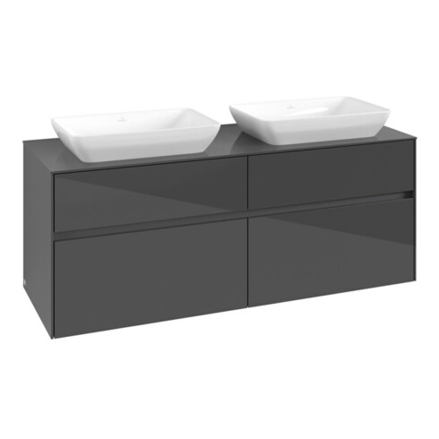 TTCV&B Meuble sous lavabo Collaro 140x54,8x50 cm, pour 2 lavabos, gris brillant