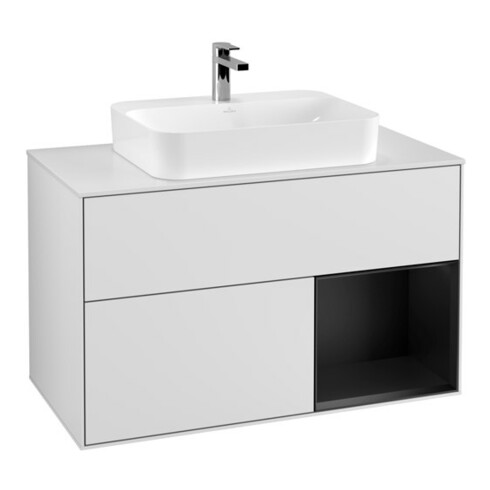 TTCV&B Meuble sous lavabo Éclairage mural Finion 100, blanc mat, réglette bleu mat laqué, blanc mat laqué