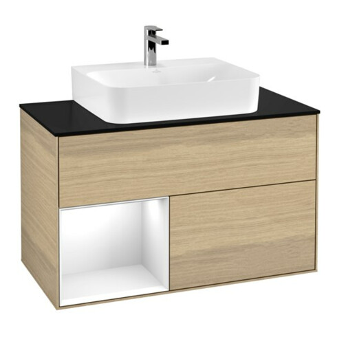 TTCV&B Meuble sous-lavabo Éclairage mural Finion 100, Pl b m, Reg li glo wh. Lac, Oa ven