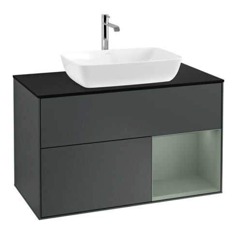 TTCV&B Meuble sous-lavabo Éclairage mural Finion 100, Pl blanc mat, Rg Olive mat laqué, avec bleu mat laqué