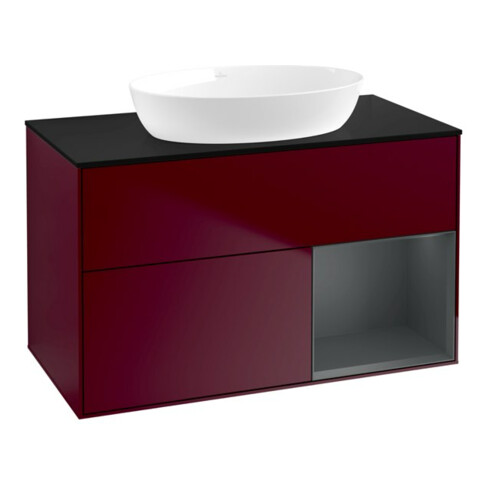 TTCV&B Meuble sous lavabo Éclairage mural Finion 100, plaque de découpe bleue, étagère médiane laquée, Peo m