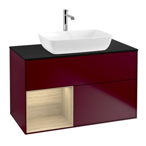 TTCV&B Meuble sous lavabo Éclairage mural Finion 100, plaque d'habillage bleue, étagère ouverte, poignée métal