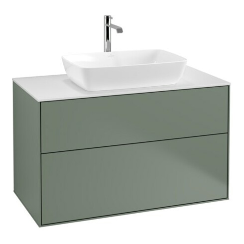 TTCV&B Meuble sous lavabo Éclairage mural Finion 100x60,3 cm, plaque abd. bl., poignée laquée