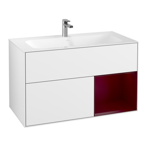 TTCV&B Meuble sous lavabo Éclairage mural Finion 99,6x59,1cm, Reg re Peo, laque blanc brillant