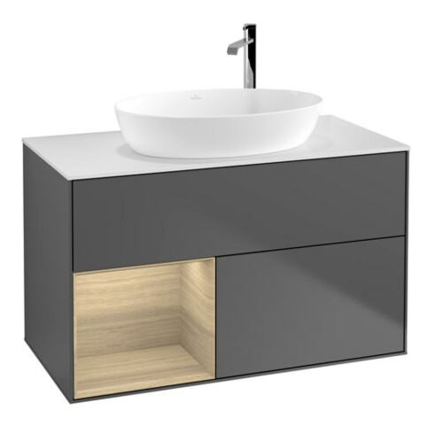 TTCV&B Meuble sous lavabo Finion 100, blanc mat, avec étagère, anthracite mat