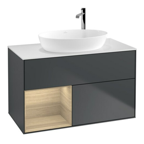 TTCV&B Meuble sous lavabo Finion 100, blanc mat, avec rangement ouvert, avec tiroir mat laqué