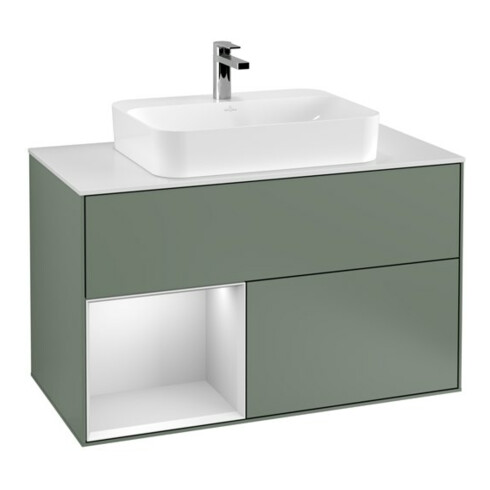 TTCV&B Meuble sous lavabo Finion 100, blanc mat, côté gauche, laqué, huile, laqué