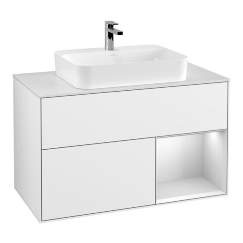 TTCV&B Meuble sous lavabo Finion 100, blanc mat, face avant blanc laqué, corps blanc laqué