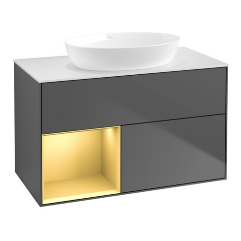 TTCV&B Meuble sous lavabo Finion 100, blanc mat, poignée or mat, anthracite mat