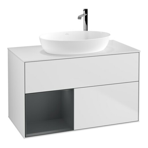 TTCV&B Meuble sous lavabo Finion 100, blanc mat, porte avec laque, blanc mat laqué