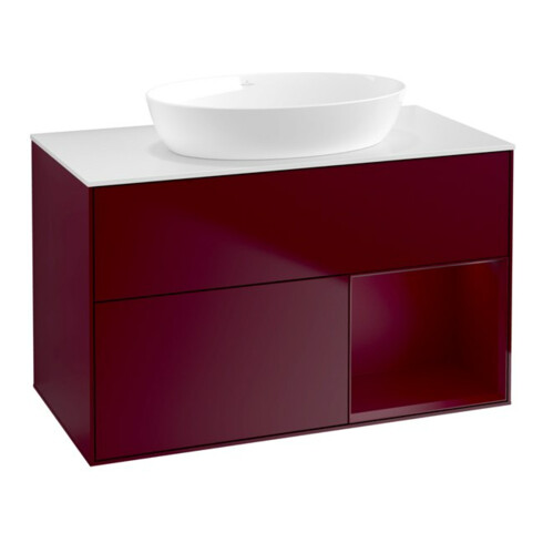 TTCV&B Meuble sous-lavabo Finion 100, blanc mat, porte Peo mat laqué, Peo mat