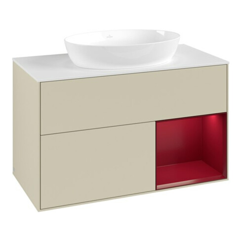 TTCV&B Meuble sous lavabo Finion 100, blanc mat, rangement Peo mat laqué, gris brillant laqué