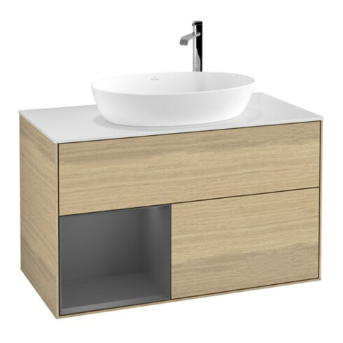 TTCV&B Meuble sous-lavabo Finion 100, blanc mat, réglette anthracite mat laqué, Oa ven
