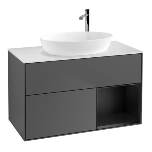 TTCV&B Meuble sous-lavabo Finion 100, blanc mat, tablette bleue mat laquée, anthracite mat