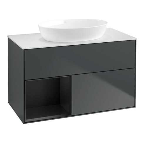 TTCV&B Meuble sous-lavabo Finion 100, blanc mat, tiroir bleu mat laqué, méd. bleu mat laqué