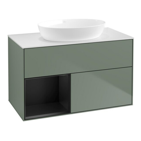 TTCV&B Meuble sous lavabo Finion 100, blanc mat, tiroir bleu mat laqué, poignée laquée