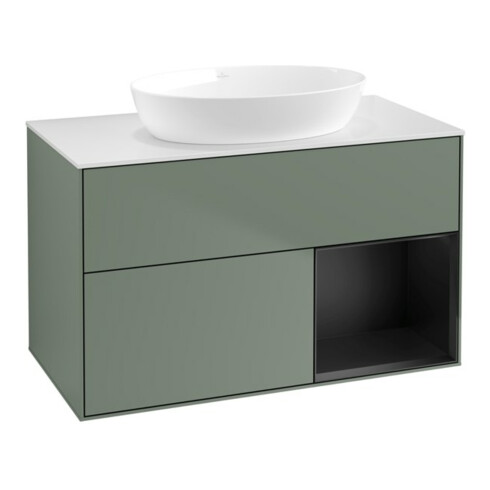 TTCV&B Meuble sous lavabo Finion 100, blanc mat, tiroir bleu mat laqué, poignée mat laqué