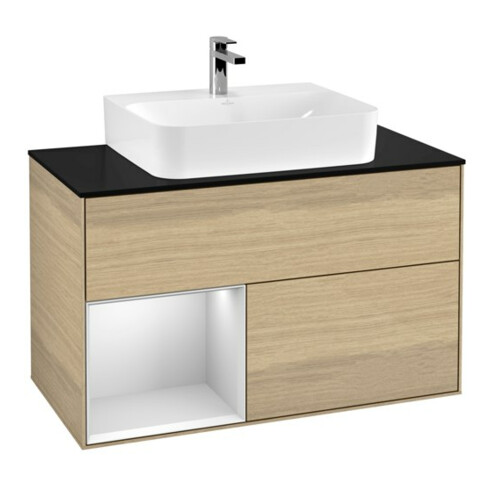 TTCV&B Meuble sous-lavabo Finion 100, blanc mat, tiroir gauche blanc mat laqué, poignée ven