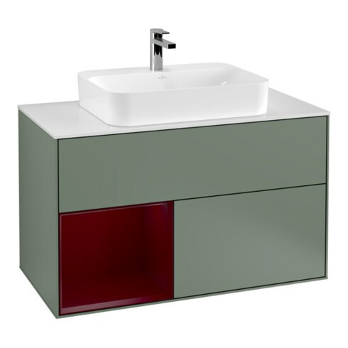 TTCV&B Meuble sous lavabo Finion 100, blanc mat, tiroir gauche, poignée métal laqué