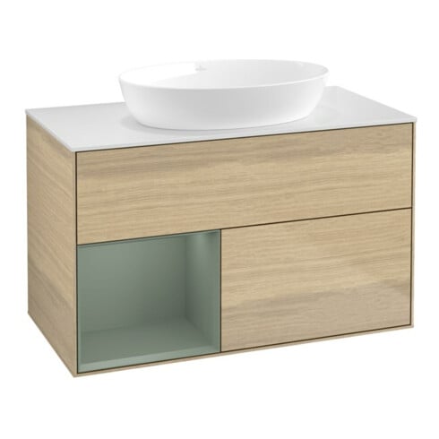 TTCV&B Meuble sous lavabo Finion 100, blanc mat, tiroir huilé avec laque, chêne ven