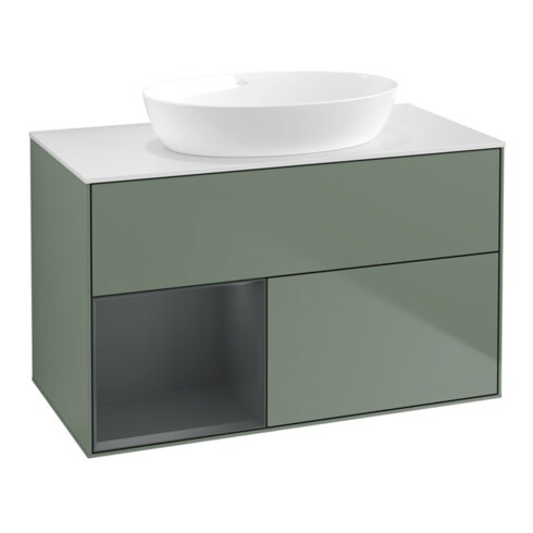 TTCV&B Meuble sous-lavabo Finion 100, blanc mat, tiroir médium laqué, poignée laquée