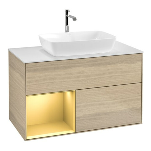 TTCV&B Meuble sous-lavabo Finion 100, blanc mat, tiroir or mat, poignée ven