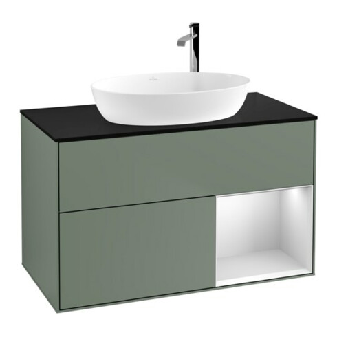 TTCV&B Meuble sous lavabo Finion 100, bleu mat, étagère blanc mat laqué, huile mat laqué