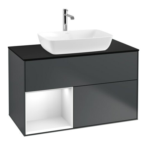 TTCV&B Meuble sous lavabo Finion 100, éclairage mural, blanc brillant, mat brillant