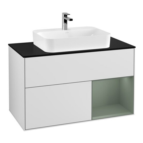 TTCV&B Meuble sous lavabo Finion 100, éclairage mural, blanc laqué, finition huilée