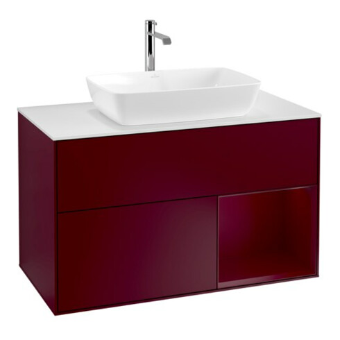 TTCV&B Meuble sous lavabo Finion 100, éclairage mural, blanc mat, avec étagère Peo m Lac, Peo m
